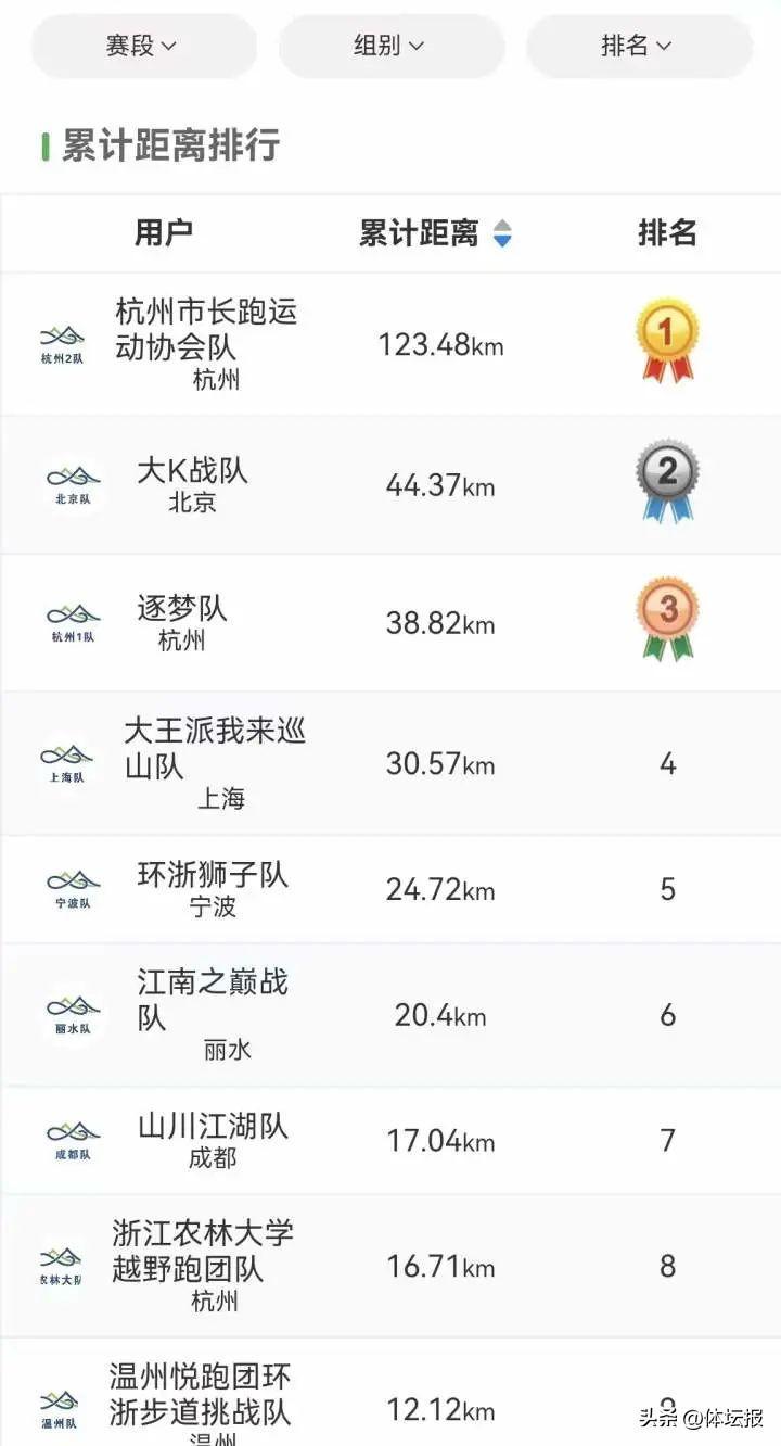 截止發稿前,目前排名第一的杭州市長跑運動協會隊在今早9:30已經行進120公里,暫居十支隊伍第一,第二名是來自北京的大K戰隊44.37公里。