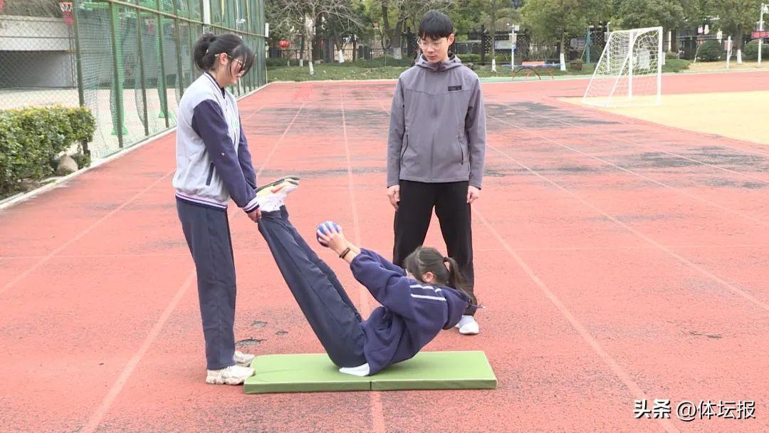 下午1點半,周斌和同班同學龍晶按照約定的時間來到學校,體育老師齊聖煒已經在操場等候。“先簡單熱身,然後操場慢跑兩圈。”在老師的口令下,兩位同學開始了今天的“專屬健身套餐”。