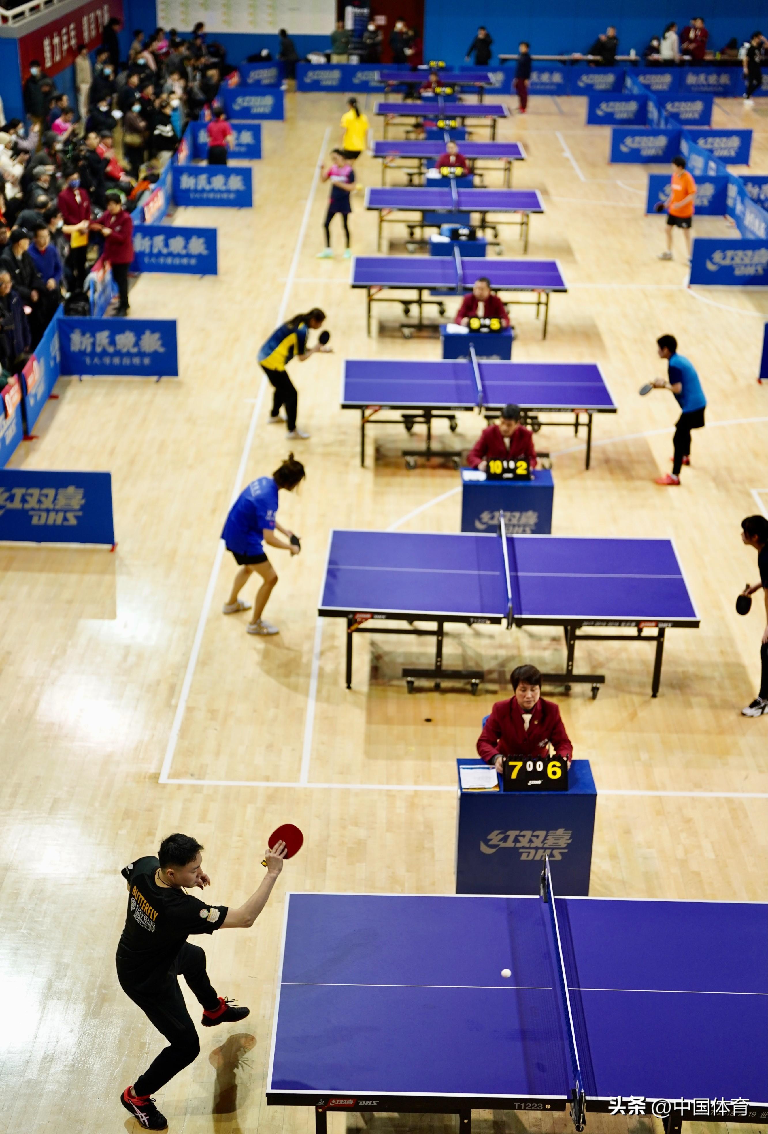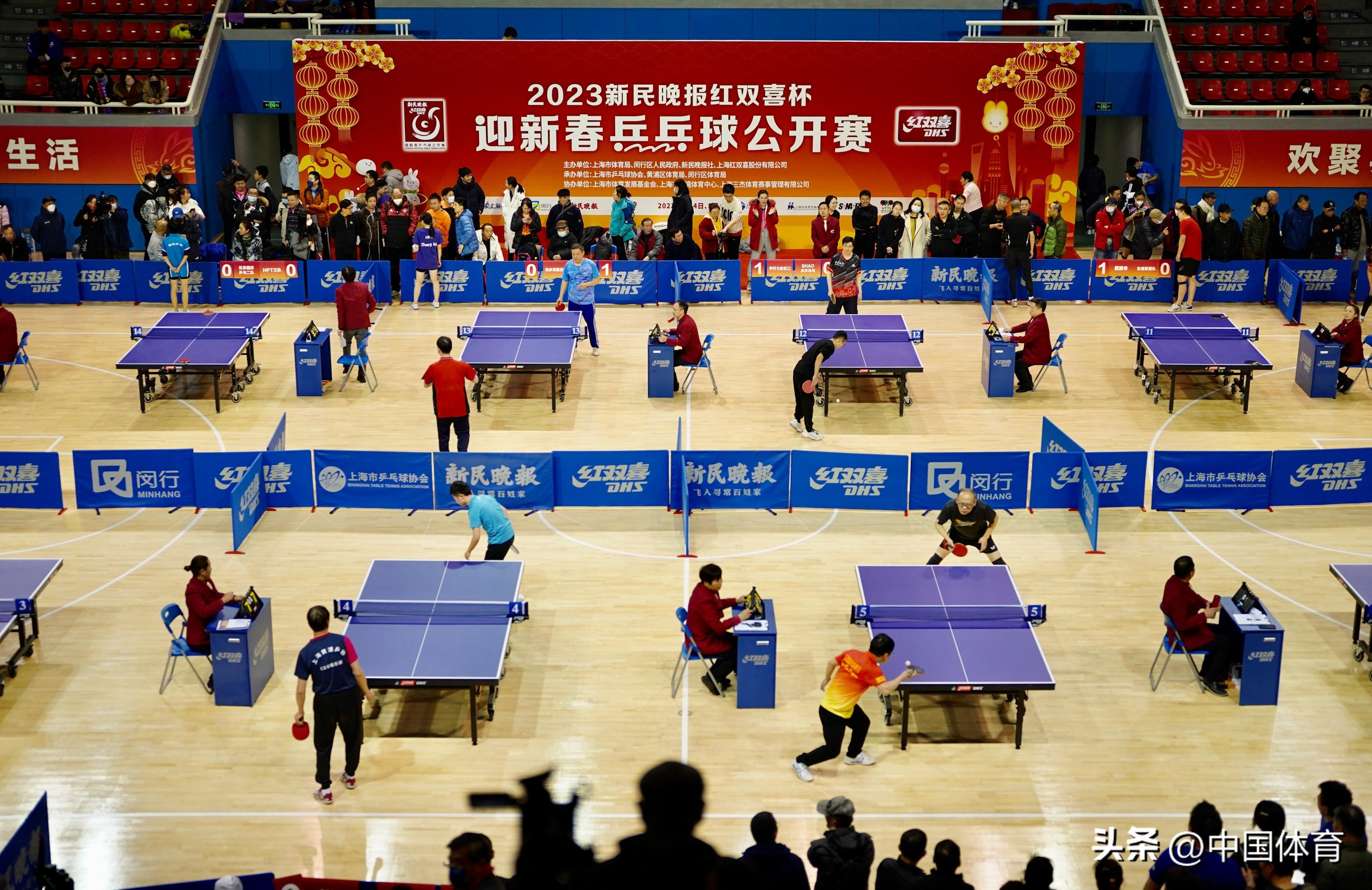 中國體育訊 2023年2月4日,新民晚報紅雙喜杯迎春乒乓球公開賽在上海盧灣體育館舉行,來自全市84支球隊的420名運動員參與此次比賽的角逐。這項全民健身的品牌賽事已持續舉辦了十七屆,這次賽事爲了契合迎新春的主題特別選擇了在立春和元宵佳節期間舉辦,爲參賽選手營造“闔家團圓”的喜慶氛圍,讓乒乓球愛好者盡情享受“快樂乒乓”的樂趣。(中國體育圖片 倪敏哲 攝)