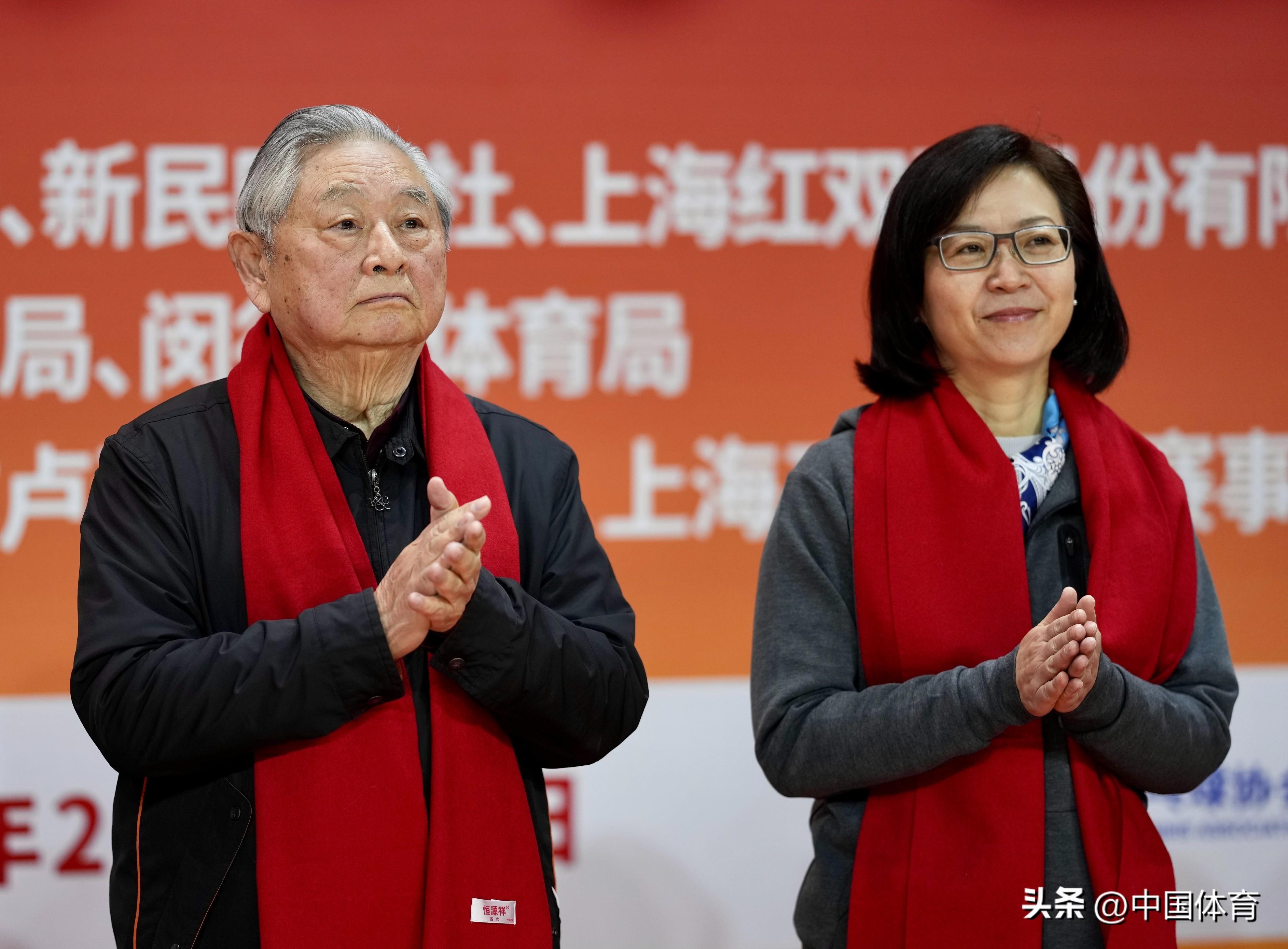 國際乒聯終身名譽主席徐寅生(左)、新民晚報社黨委書記、社長馬笑虹出席開幕式