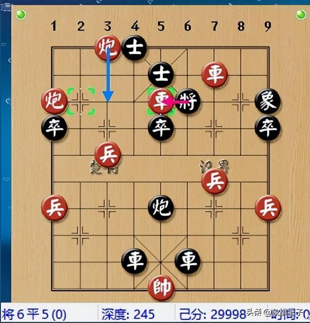 黑此招將5平6,再起勝負手,冒險一步,紅方退炮回防,守住黑棋雙車炮偷殺底線。