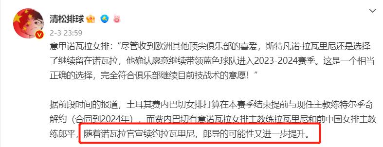但如果郎平付出,優先選擇國外球隊的話,國內不管是球迷還是排協都會意難平!畢竟中國女排現在也急需要她的迴歸!如果不爲國家隊貢獻,反而去國外俱樂部賺錢,估計風評也會受影響!那麼對於郎平執教意甲的猜測你怎麼看呢?