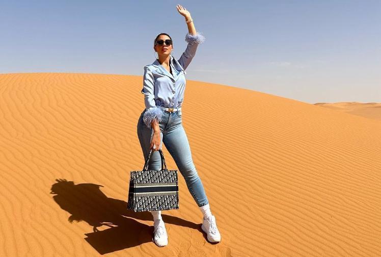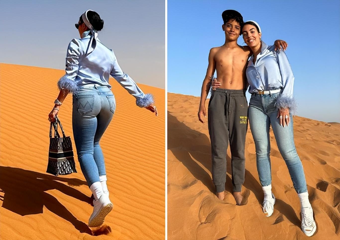 雖然沙漠地帶很熱,但喬治娜在穿衣打扮上,也只能選擇保守,畢竟西亞國家對於女性身材暴露不太接受,所以,擁有極致曲線的喬治娜也只能把自己包裹得嚴嚴實實的,不敢公開秀性感。