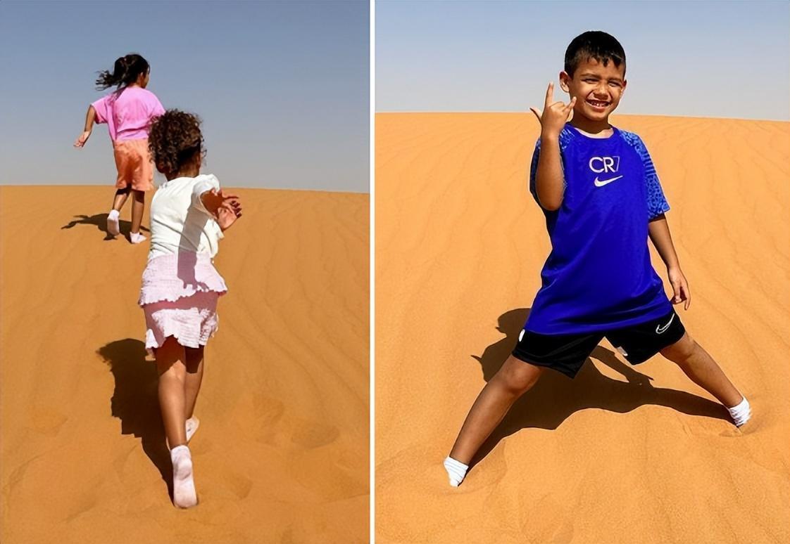 喬治娜雖然不敢露肉,但孩子們卻不擔心這個問題,12歲的迷你羅就索性脫掉了上衣,在沙漠裏“放飛自我”,甚至還半裸上身與後媽喬治娜同框合影,勾肩搭背,看起來相處得非常融洽。