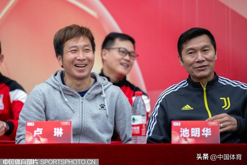 圖爲廣東足壇名宿池明華(右)和盧琳