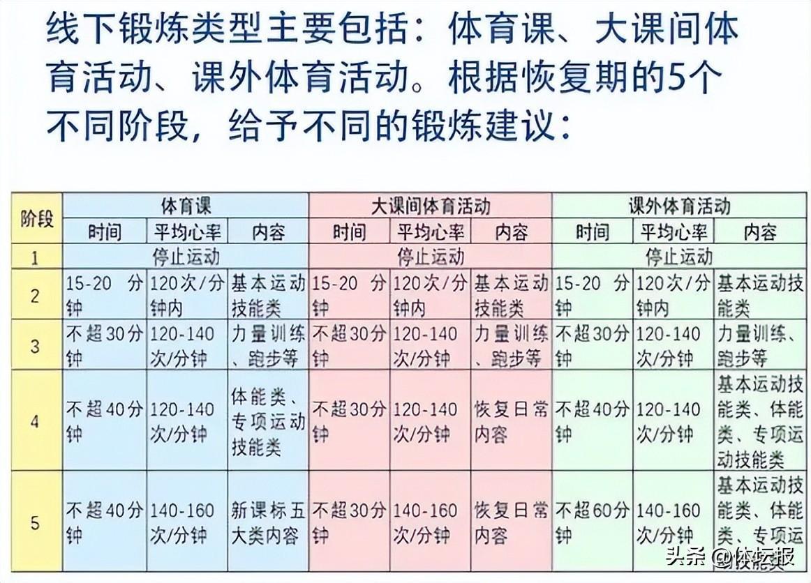 對此,多所學校專門召開體育教研組的會議,就“陽康後的體育課怎麼上”羣策羣力。不難發現,“安全第一”和“循序漸進”成爲新學期各校開展體育活動的重要方針,並根據學生的實際情況進行了課程、活動的調整。