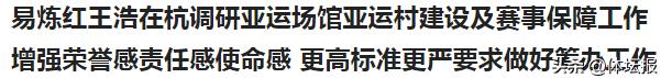 易煉紅在調研中強調,辦好杭州亞運會亞殘運會責任重大、使命光榮,要加大宣傳推廣力度,凝聚成功辦賽的強大合力,一體化推動亞運場館設施測試、運行維護和惠民開放,提升羣衆獲得感幸福感,打造更多城市地標和亮麗名片,高水平實現“辦好一個會、提升一座城”。