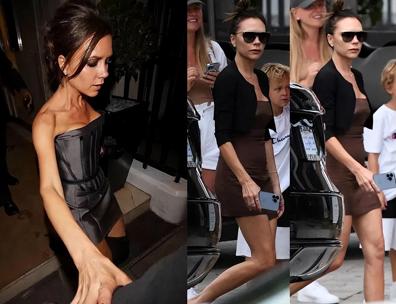 現年48歲的維多利亞出現在倫敦梅費爾街區,參加英國版《Vogue》雜誌的主編Edward Enninful舉辦的派對,當晚倫敦街頭的風很大大,即便貝嫂優雅裝扮,但還是被吹得披頭散髮的,稍顯狼狽的“辣妹”用手撩起頭髮,行色匆匆,輕薄的衣服緊貼乾癟的身軀,顯得更加消瘦。