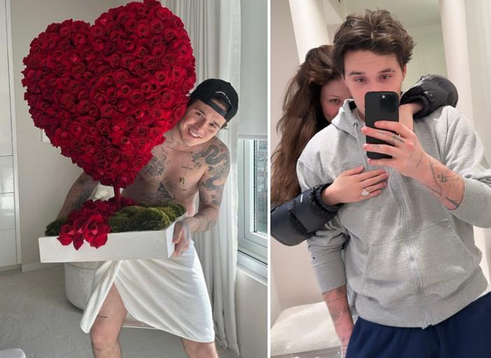 貝克漢姆的大兒子布魯克林更新了個人INS狀態,分享了一組與妻子妮可拉的恩愛照,正值西方情人節,這對新婚燕爾自然也要撒一把狗糧,只見,布魯克林抱着一盆巨大的玫瑰心形花束,大表忠心,兩人還邊喝紅酒邊自拍,氛圍感拉滿,果然是疼老婆的人,真捨得下血本!