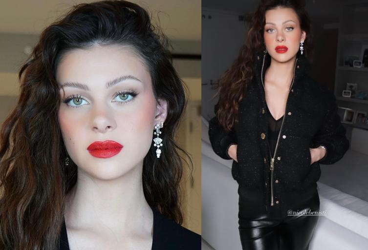 與此同時,妮可拉-佩爾茨還穿着一身黑,與脣間的鮮紅色形成巨大反差,深V出鏡,性感魅惑,耀眼的鑽石耳墜彰顯財富與地位,好像畫報裏的摩登女郎走出來了。