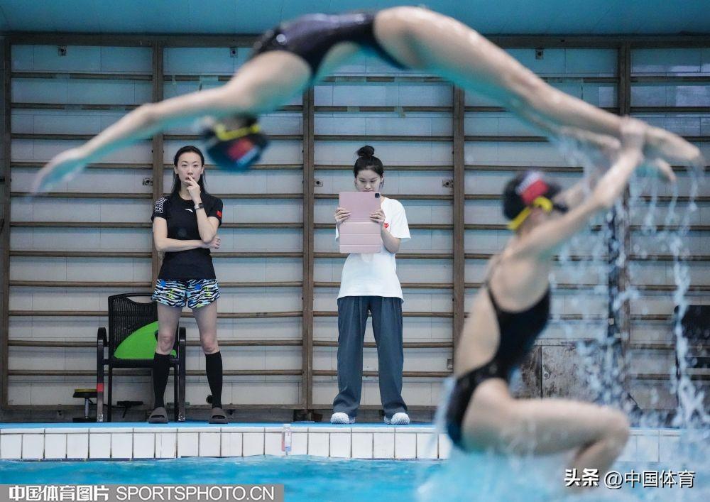 圖爲中國花樣游泳隊主教練張曉歡指導隊員訓練