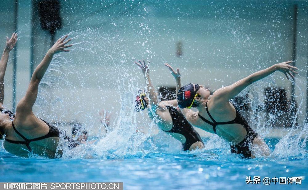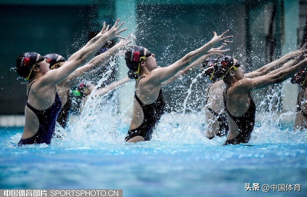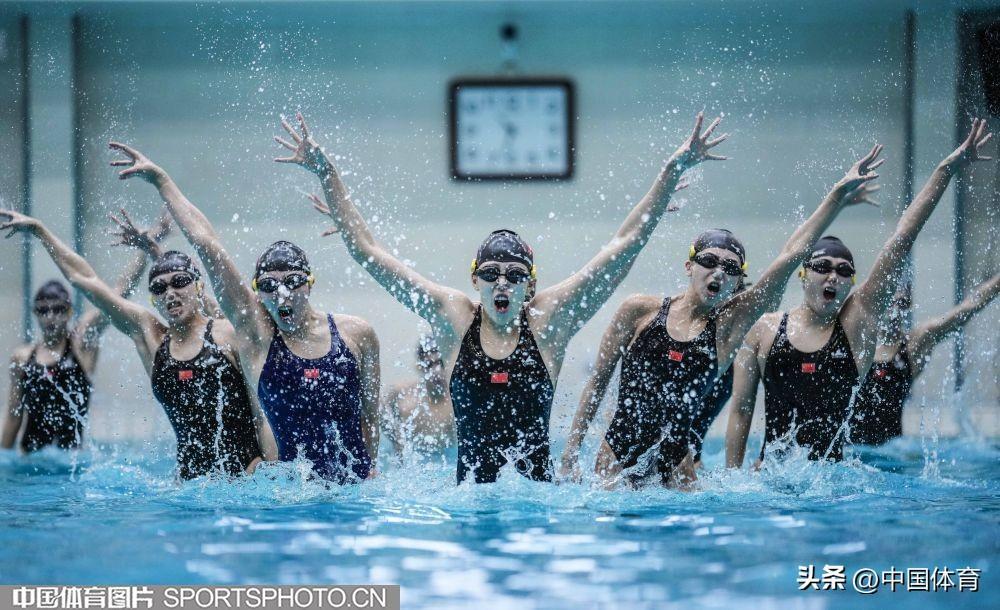 圖爲中國花樣游泳隊集體項目選手在進行訓練