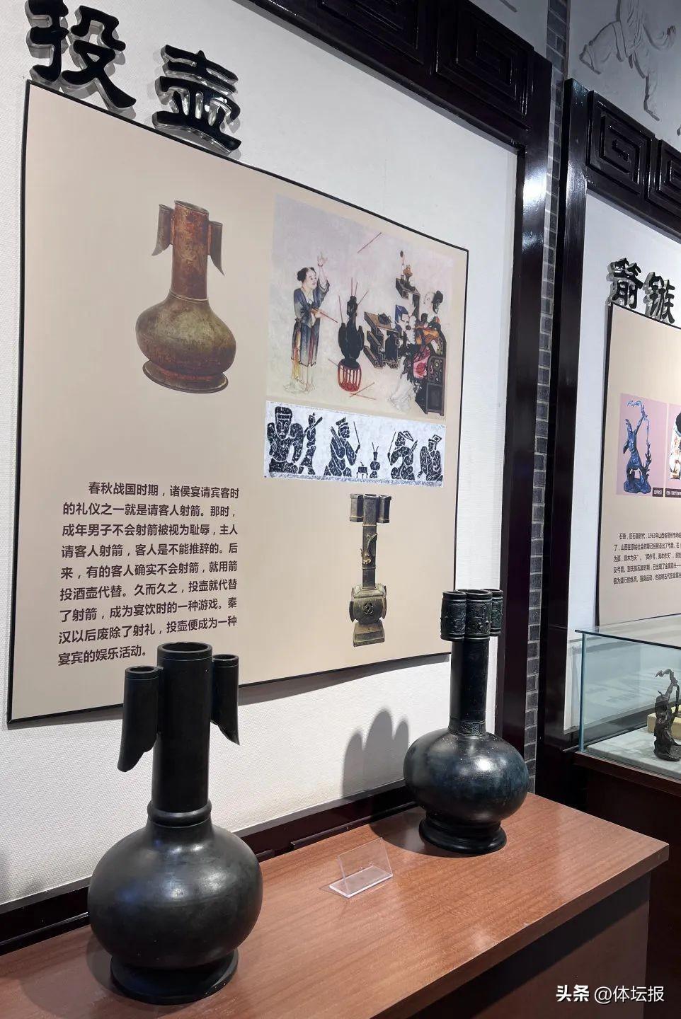 在山西省體育博物館,你就能看到“古代體育”的種類:球類、射藝、棋類、百戲社火以及武藝。雖然展櫃內的文物實物不是很多,但是對於古代體育發展歷程的表達非常完整。據介紹,山西省體育博物館從全省各類壁畫、磚雕等文物中,梳理和尋找關於體育的線索和細節,追溯其發展史和演變史,講述山西曆史與體育相關的故事。
