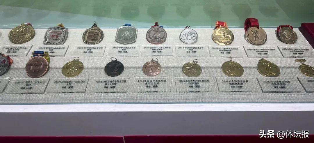 在二層展廳,你能看到很多山西運動員的“身影”,從奧運會到亞運會再到全運會,每一位在賽場上奮力拼搏的勇士們,都在展廳內得以呈現——奧運會蹦牀項目冠軍董棟,他的簽名球衣就放在展櫃內;山西的摔跤名將梁磊,早在體育博物館成立之初,他就將自己摔跤生涯中取得的獎牌全部捐贈了出來……那是一個運動員的青春,飽含了衆多汗水、淚水和血水的記憶。這裏,有運動員一生中最爲耀眼和光彩的見證。