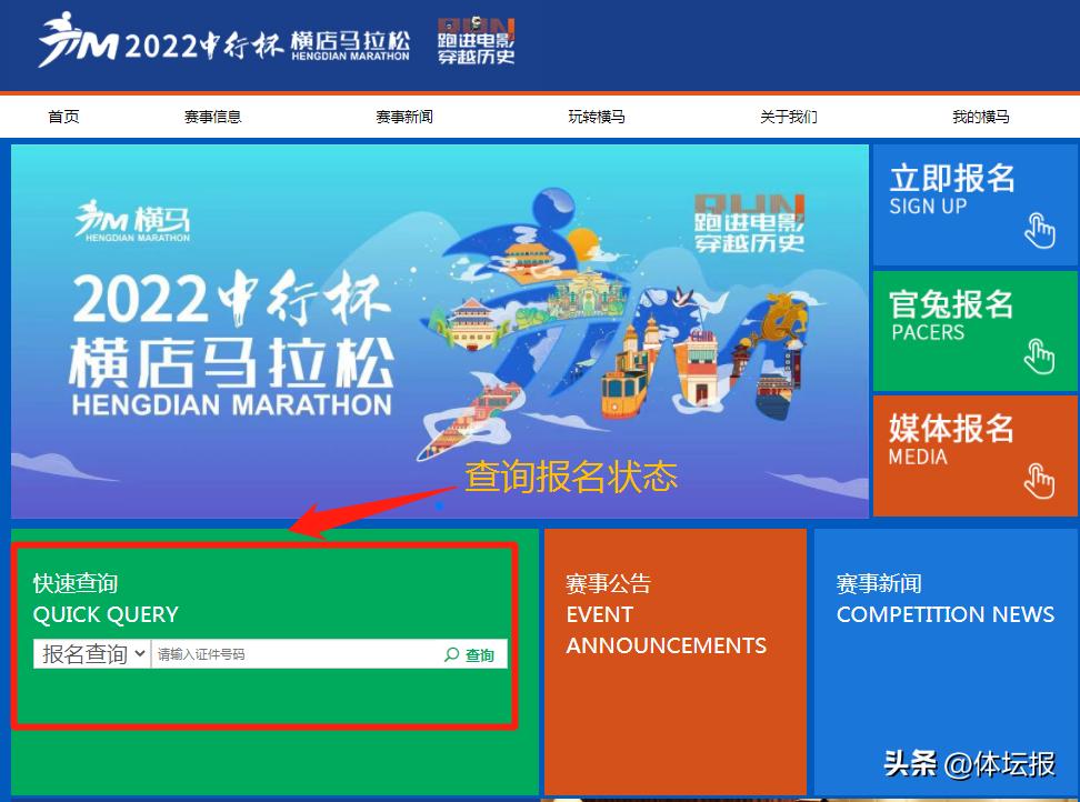 電腦端登錄橫馬官網(https://www.hmarathon.com),在“報名查詢”輸入身份證號碼,查詢自己的具體報名情況。