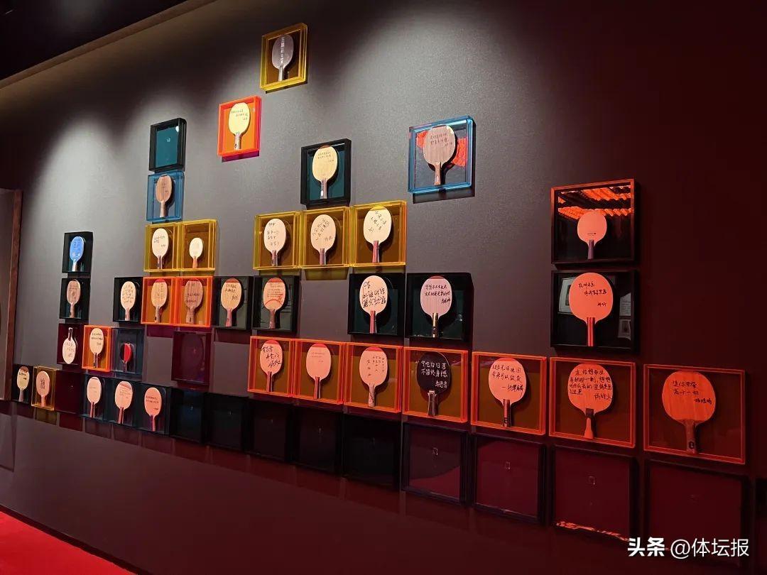此外,記者還看到1981年第36屆世乒賽中國隊包攬的7座獎盃——那是國乒史上第一次在世乒賽上實現對金牌的包攬。如今,這7座獎盃一齊矗立在湖北體育博物館的乒乓球氛圍展廳的正中央,讓人再度感受到了國乒的強勁實力。除了這7座獎盃外,這一展廳內還陳列着許多乒乓球拍,上面留下了許多乒壇名人的親筆簽名。