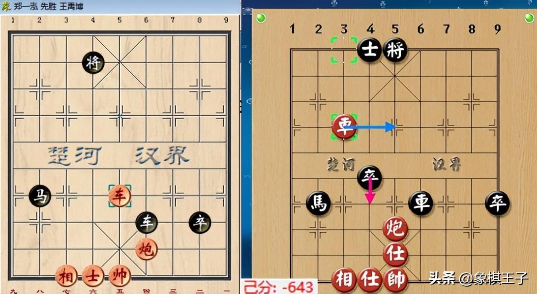 這個棋黑淨有兩個過河卒,紅少相,黑爲勝勢,如小小王勝,則附加四盤超快棋,兩隊再決高下。