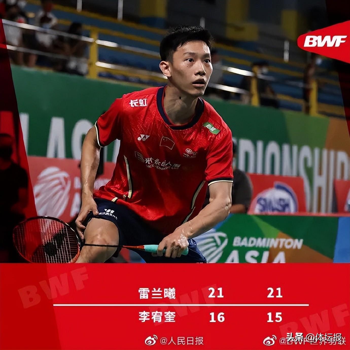 決賽中首先迎來男單對決,中國選手雷蘭曦直落兩局(21:16/21:15)戰勝韓國選手李宥奎,中國隊先拔頭籌。