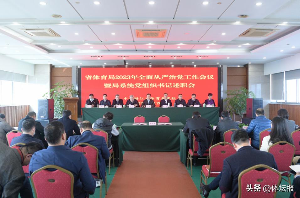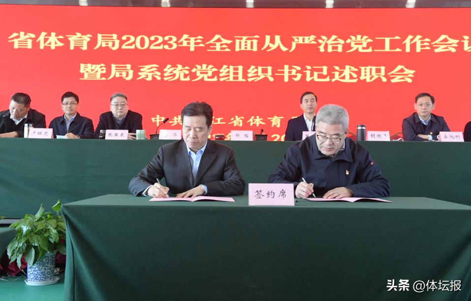 鄭瑤與省局領導班子成員、直屬單位主要負責人簽訂全面從嚴治黨責任書。浙江體育職業技術學院、省黃龍體育中心 、省體育彩票管理中心3家單位黨組織書記作黨建工作述職。會前,集中觀看反腐電視專題片。