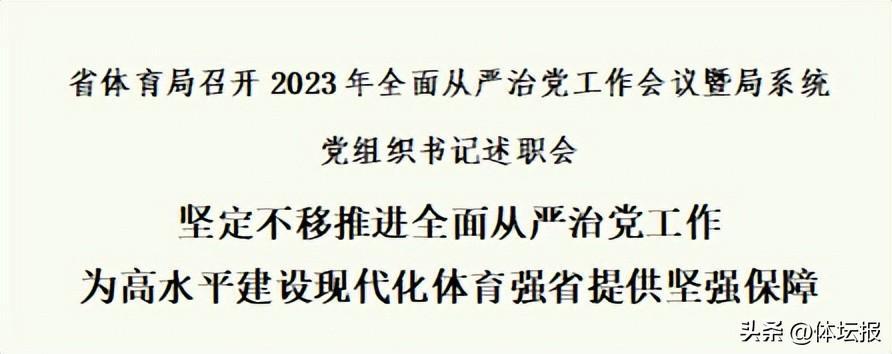 會議指出,2023年是深入學習貫徹黨的二十大精神開局之年,也是杭州亞運會舉辦之年,要深入學習把握新時代新徵程全面從嚴治黨的戰略部署,增強以自我革命引領體育改革發展的政治自覺。會議號召,要深刻領悟“兩個確立”的決定性意義,始終做到政治上絕對忠誠;深刻認識“六個如何始終”的趕考之問,在以自我革命引領社會革命中彰顯體育擔當;深刻認識“兩個永遠在路上”的重大判斷,打好體育領域黨風廉政建設和反腐敗鬥爭持久戰;深刻認識“五個方面努力方向”重點部署,壓緊壓實全面從嚴治黨政治責任。