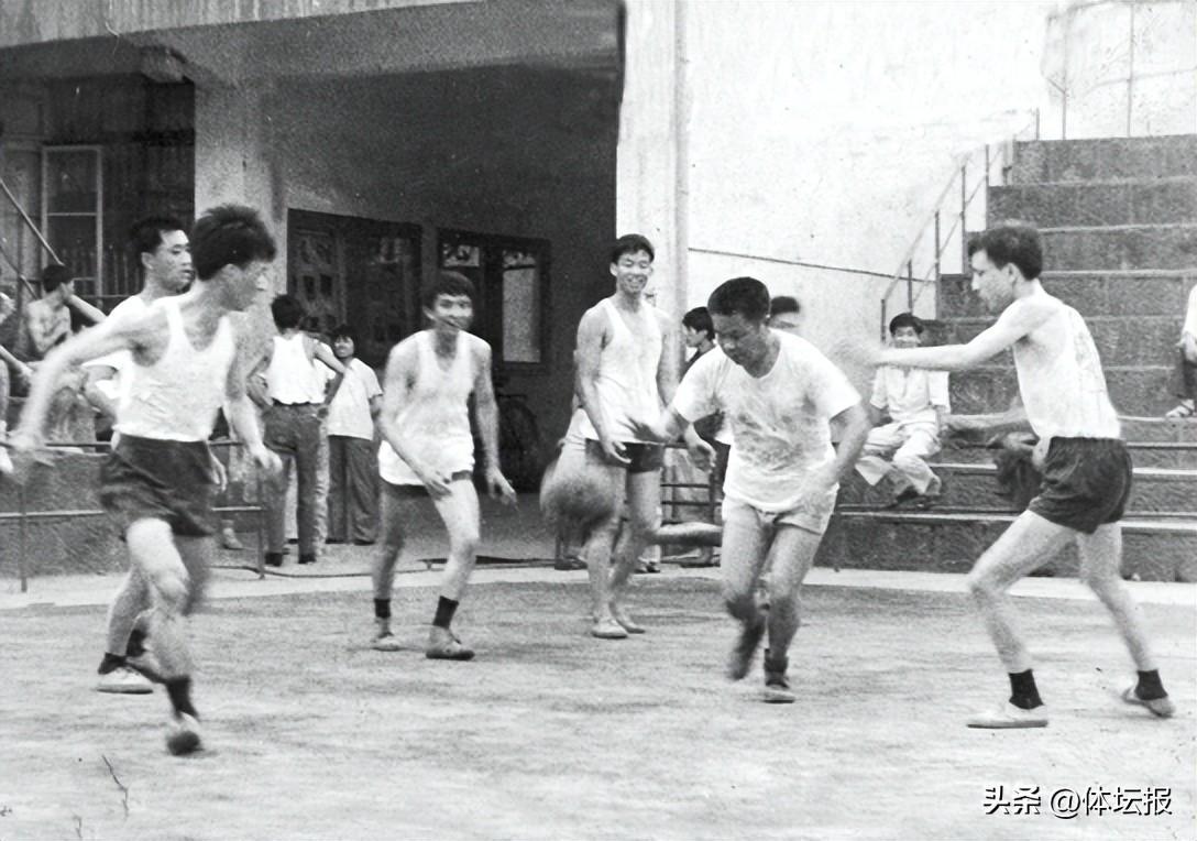 上世紀八十年代,周全新(中)與縣委書記石永良(右二)等在體委燈光球場參加縣級機關籃球比賽