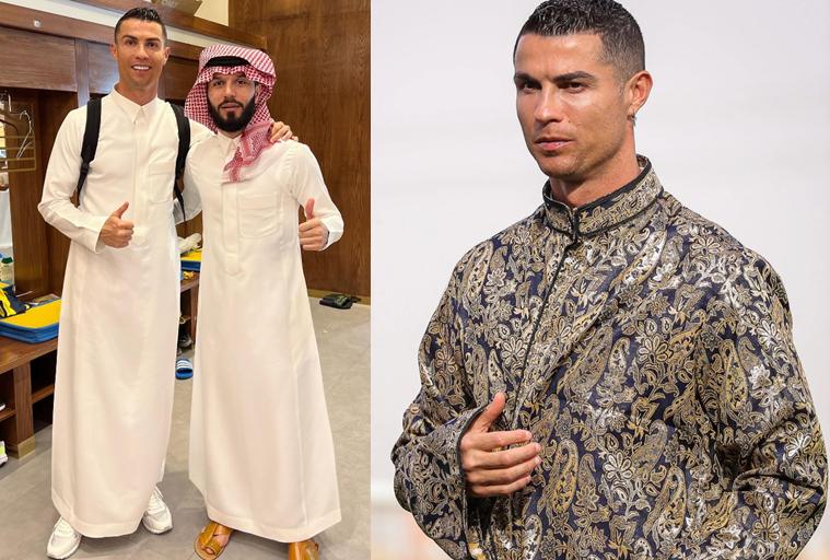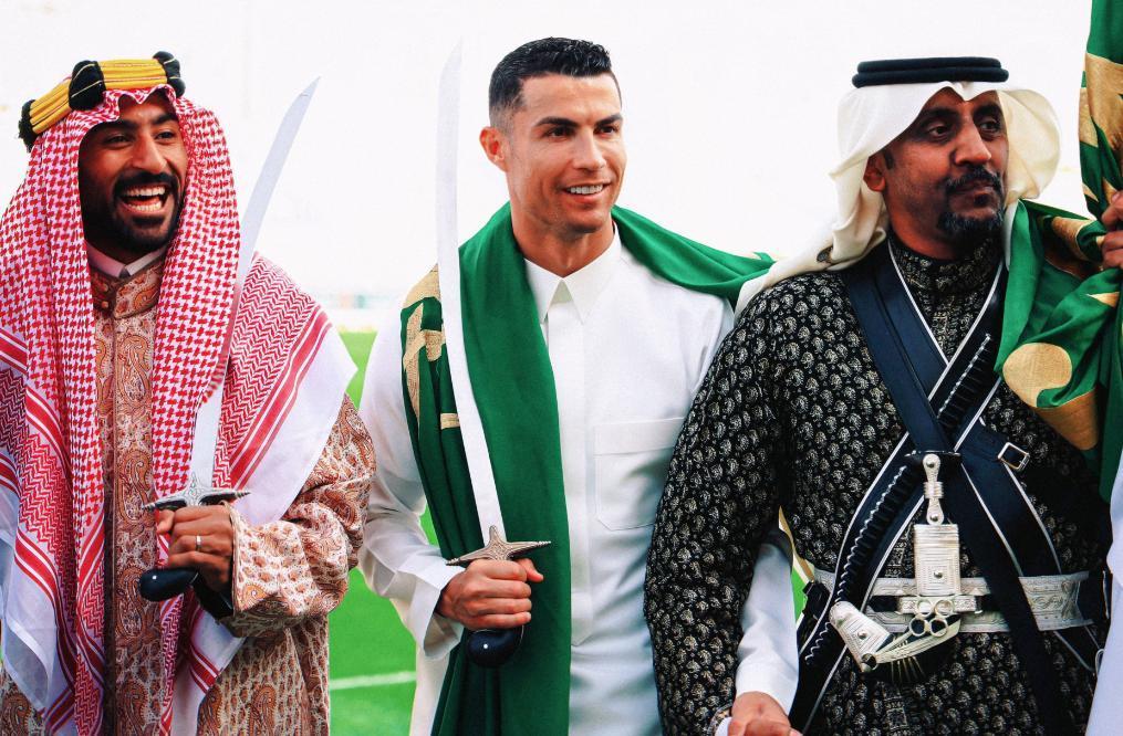 本週,適逢沙特的建國紀念日活動,剛剛加盟利雅得勝利的葡萄牙前鋒C羅,特意感受了一番節日氣氛,只見他身穿沙特傳統服裝,隨俱樂部出席了相關活動,一身白袍裹身,西亞風情渾然天成,確實還與C羅的氣質蠻搭的。