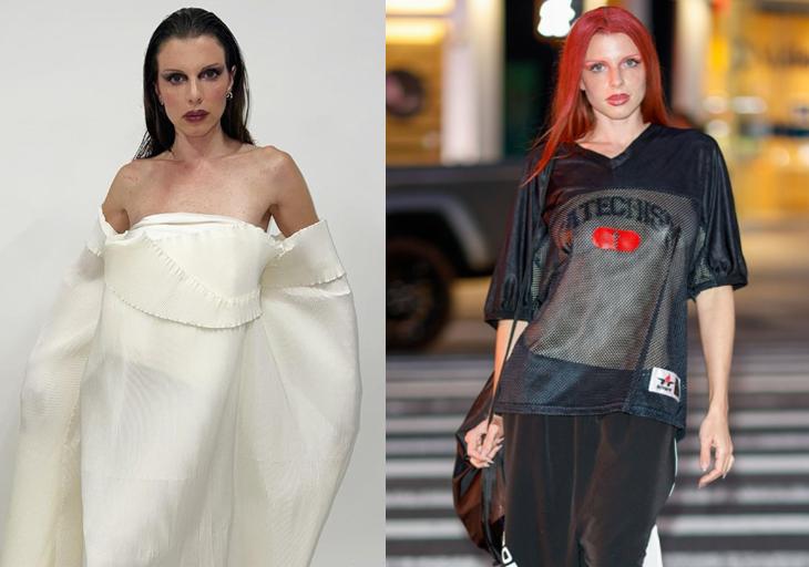 其實最近一段時間,朱莉婭-福克斯的風頭正盛,各種時裝週的秀場活動她都努力參加,而且每次出鏡的風格都差不多,一截窄窄的布條裹胸,秀出曼妙腰身以及性感鎖骨,搭配濃烈斑斕的眼妝,很難忽視掉她的存在。