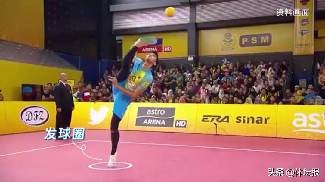 其中雙人賽和四人賽,發球手可以在底線後任何位置發球。而三人賽和團體賽,發球方兩名隊員須分別站在指定範圍內,其中一名隊員將球投給發球手,發球手一隻腳必須站在發球圈內,另一隻腳將球踢向對方場區。發球時,如果球越過網,並在對方的邊界內,無論球是否觸網,發球是有效的。