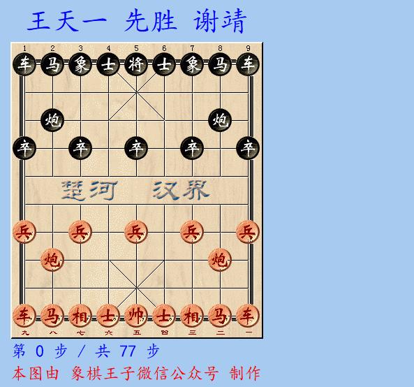 勝者組中,王天一攻殺謝靖,兩人慢棋打和,加賽快棋,王天一換先執紅,在飛相對士角炮陣中,紅左橫車,激斗的路線。