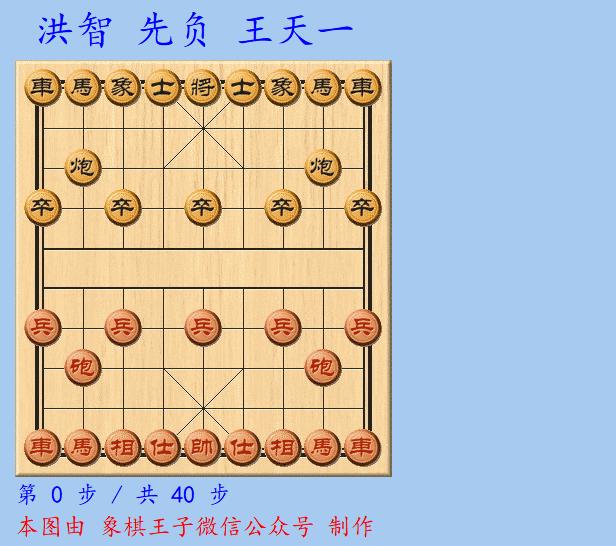 洪智佈陣,天王出手仙人指路,常見陣勢,王天一應以卒底炮,佈局紅方右中炮、黑飛右象。