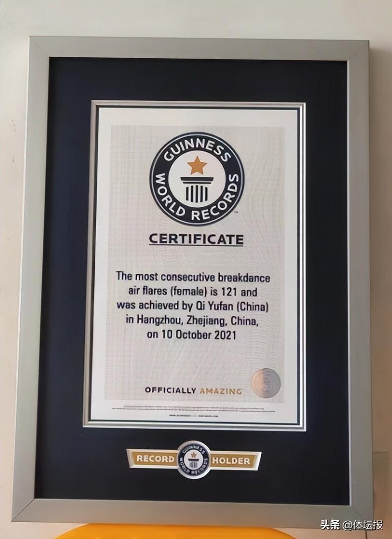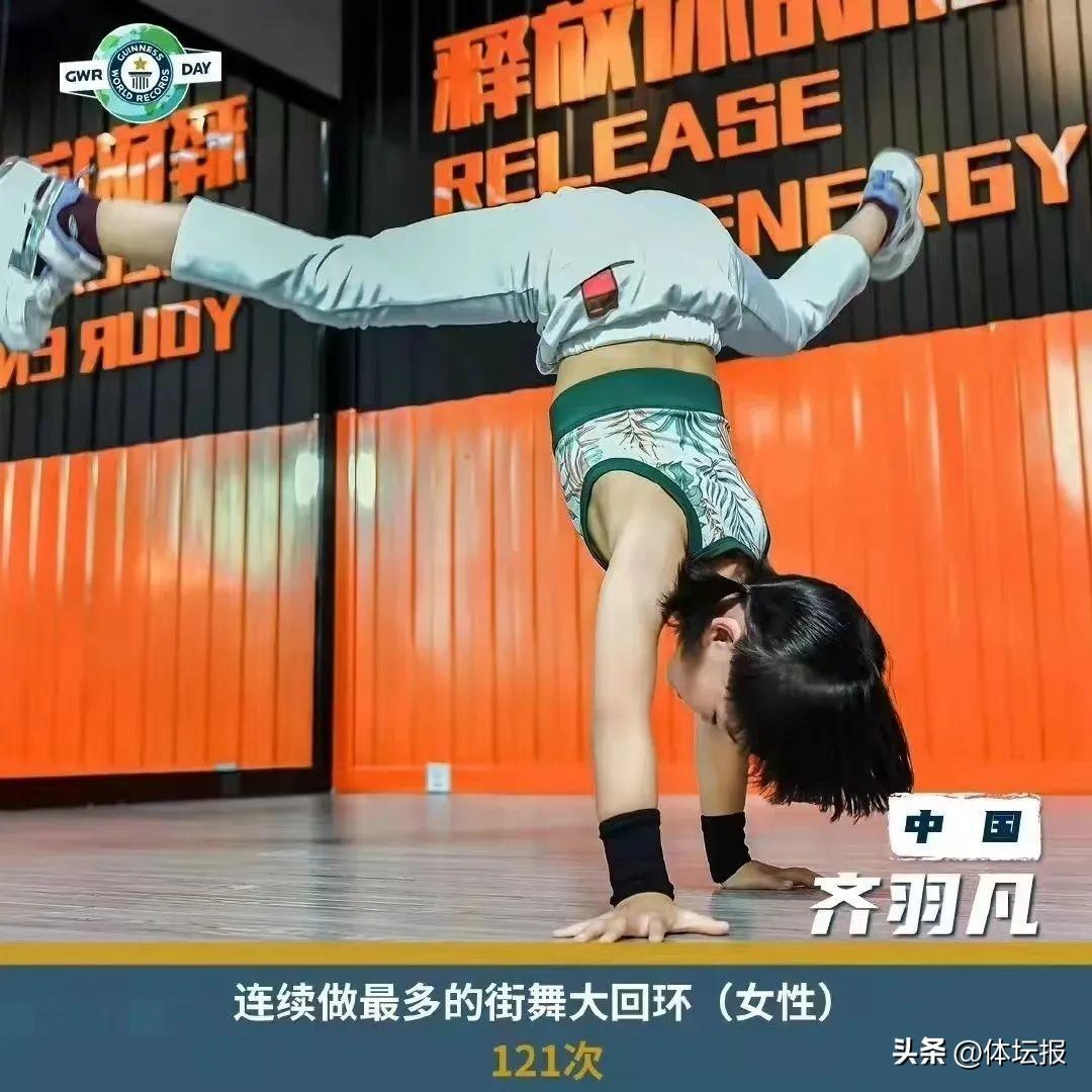 事實上,這並不是她的第一個世界紀錄,早在2021年,年僅7歲的齊羽凡一口氣做了121個大回環,創下了女性連續做街舞大回環最多的吉尼斯世界紀錄。