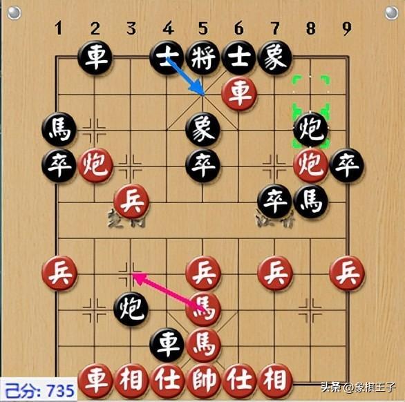 如走出,紅雙馬恰好卡住黑車炮,黑動炮就丟車,動車就丟炮,十分精巧。
