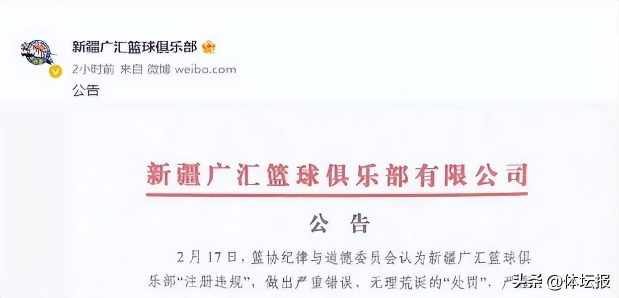 2月28日深夜,新疆廣匯男籃在社交平臺發文,宣佈退出本賽季剩餘比賽、退出CBA聯盟。