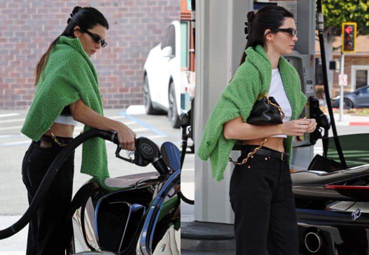 據悉,肯達爾-詹娜剛剛結束在法國巴黎的時尚週的走秀工作,目前已經回到了美國洛杉磯,這次獨自駕車給法拉利加油,“豆總”穿着一件露臍白T恤,肩膀上披了一件綠色毛衣,搭配一條休閒牛仔褲,非常低調的裝束。