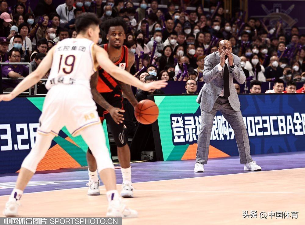 圖爲北京控股隊主教練馬布裏場邊指揮