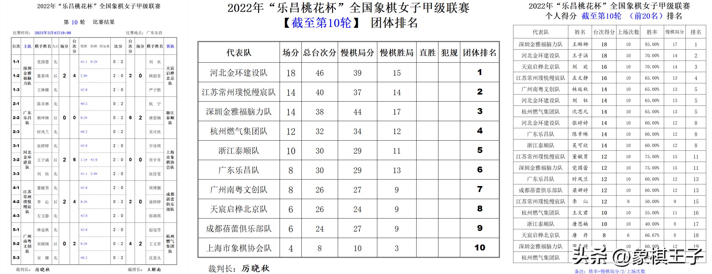 廣東樂昌隊、廣州南粵文創隊8分,天宸啓樺北京隊、成都蓓蕾俱樂部隊6分,上海市象棋協會隊4分。