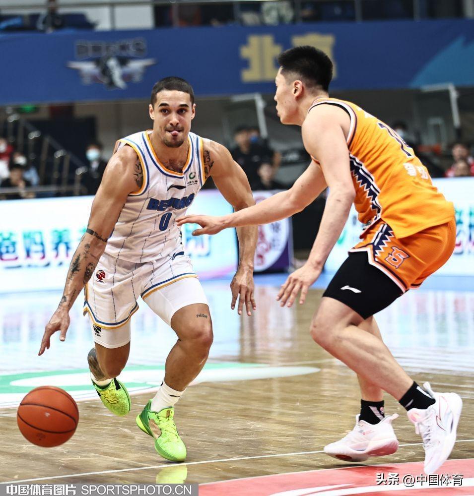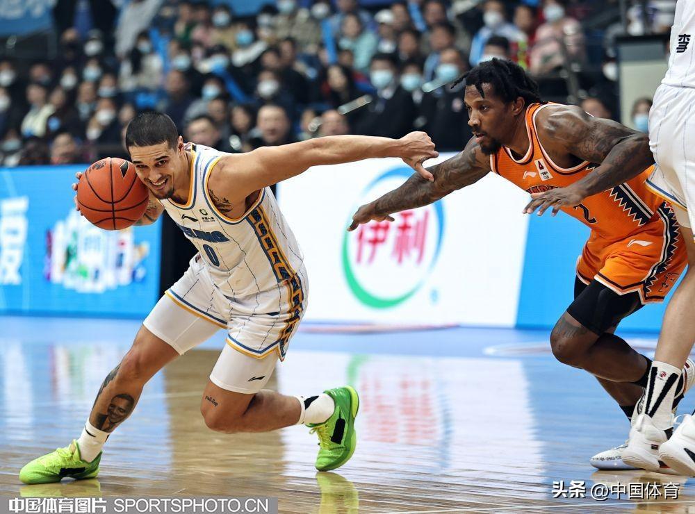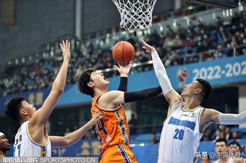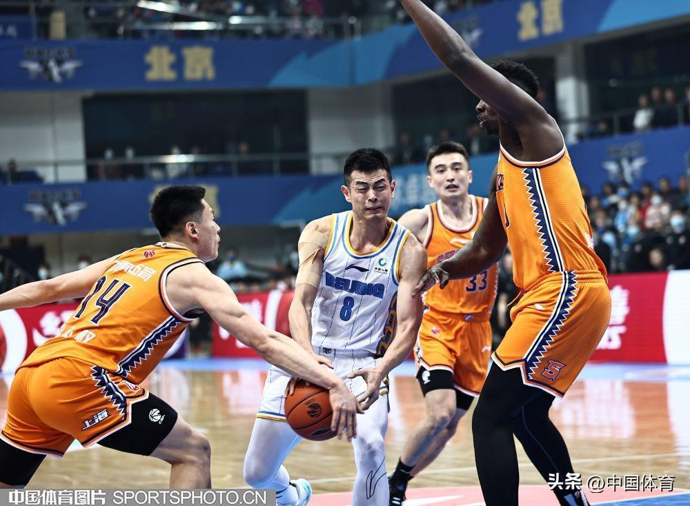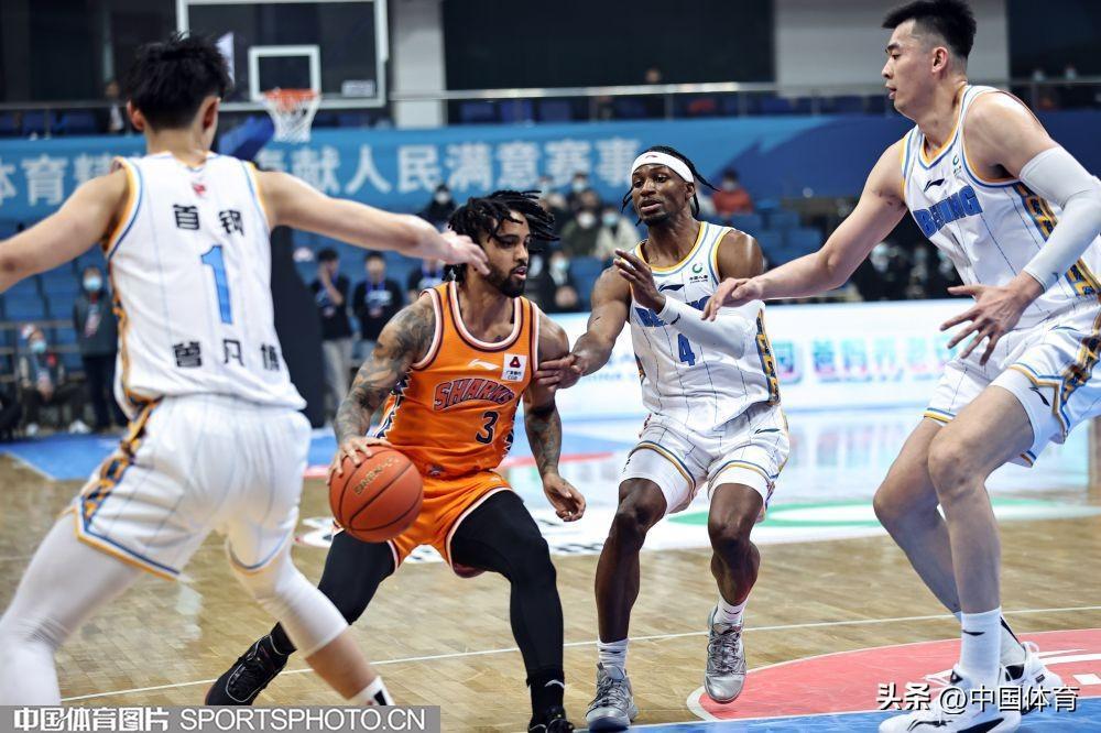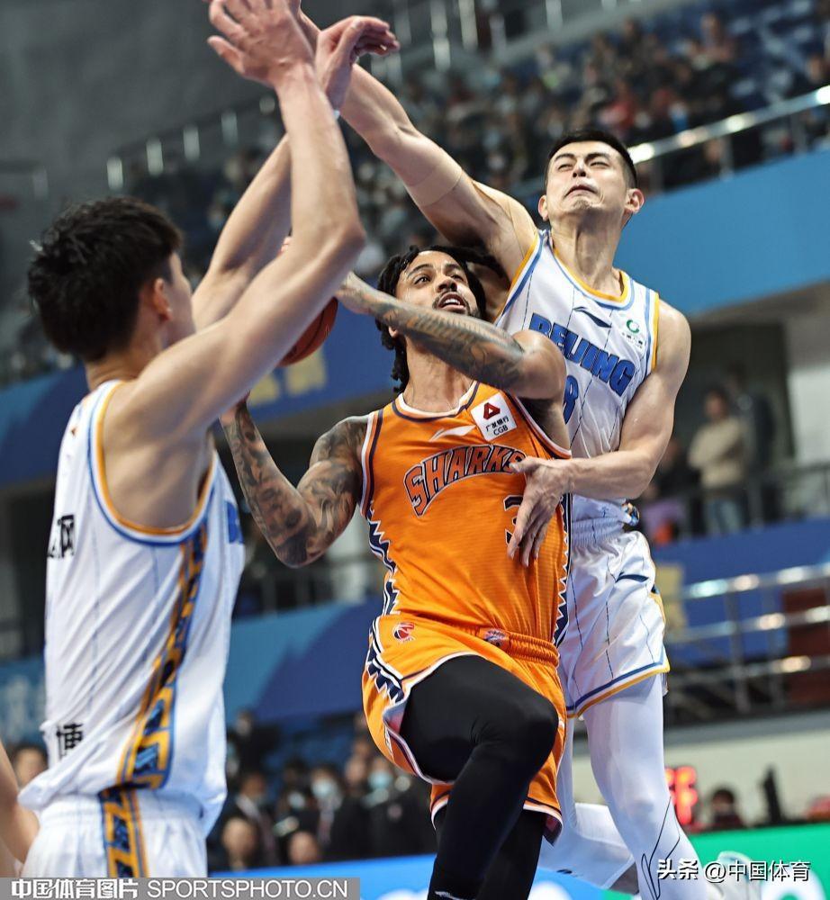 中國體育訊 3月5日,2022-2023賽季CBA聯賽常規賽第31輪全面展開。在首鋼籃球中心,主場作戰的北京首鋼隊(白衣)以68比94負於上海久事隊(橙衣)。 (中國體育圖片 王憲民 攝)