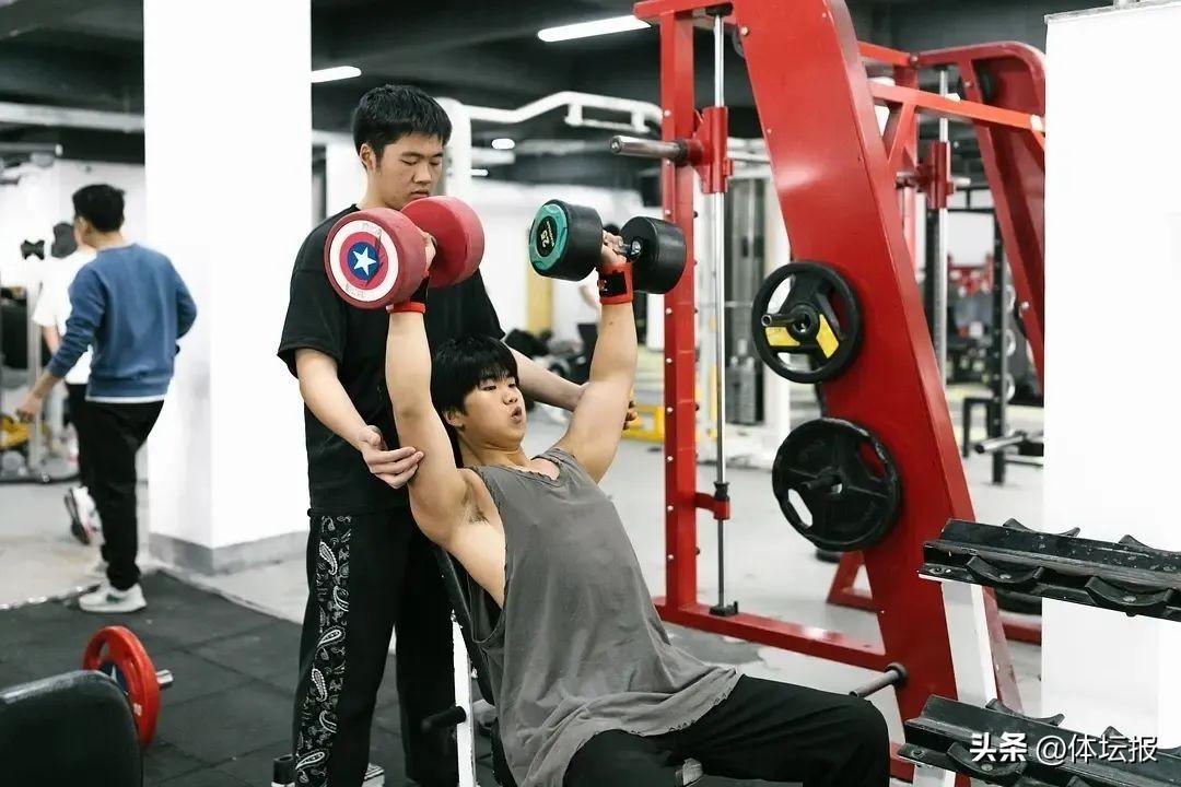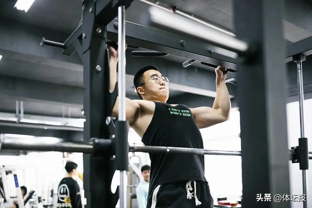 考入同一所大學後,兩個年輕人正琢磨着要去學校附近辦卡,再續前緣,卻意外得知校內就有“擼鐵”的好去處,於是也來到了這一方天地。“一看,那麼大個健身房,喜不自勝。”