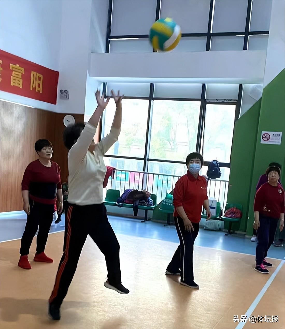 富陽區老年人體育協會氣排球俱樂部的女性會員都來參加,自由組合,以老帶新,鍛鍊+配合+提高。大家都本着開心第一、快樂參與。