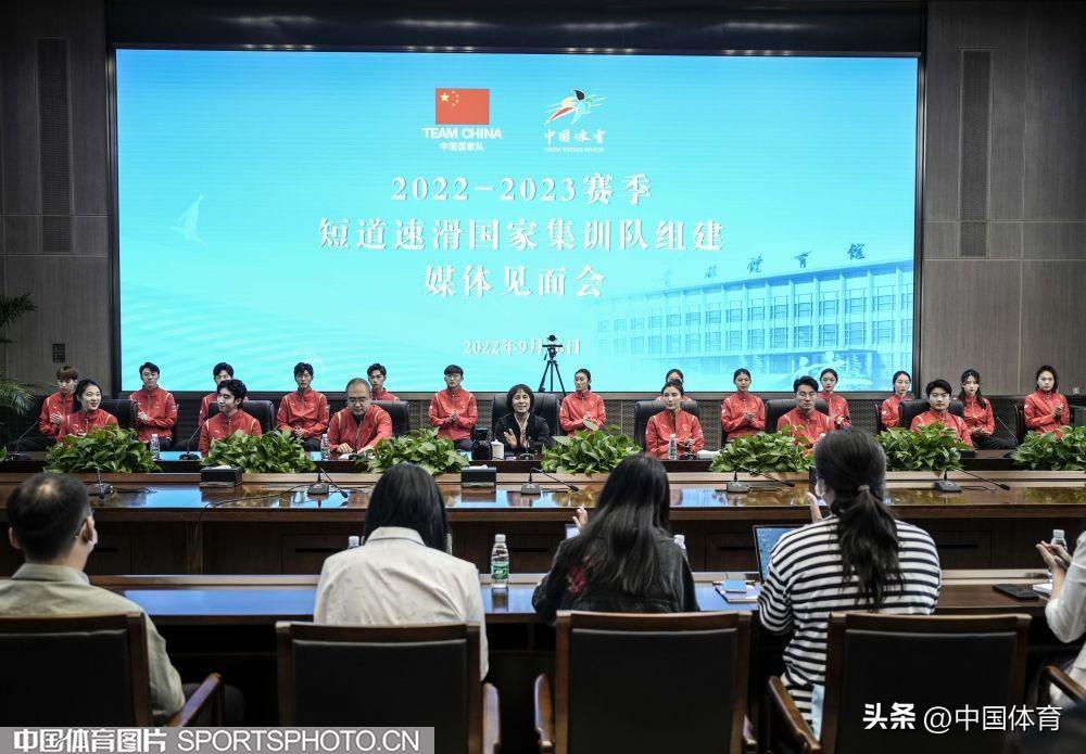 中國體育訊 9月26日,2022-2023賽季短道速滑國家集訓隊組建媒體見面會在北京舉行。經過3天的選拔邀請賽,根據各單項比賽成績,最終選出16名運動員及北京冬奧會冠軍任子威組建了這支面貌全新的短道速滑隊,由張晶擔任主教練。(中國體育圖片 魏徵 攝)