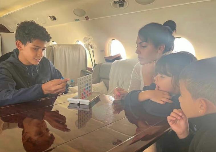 由於曼聯球星C羅目前正在代表葡萄牙國家隊比賽,所以沒有和家人們在一起,喬治娜獨自帶着5個娃,在私人飛機裏享受愜意人生,和孩子們一起玩着桌牌遊戲,迷你羅還給兩個妹妹化妝,一家人其樂融融,特別幸福,想必這樣溫馨的畫面,也是C羅一直堅持踢球的最大動力。