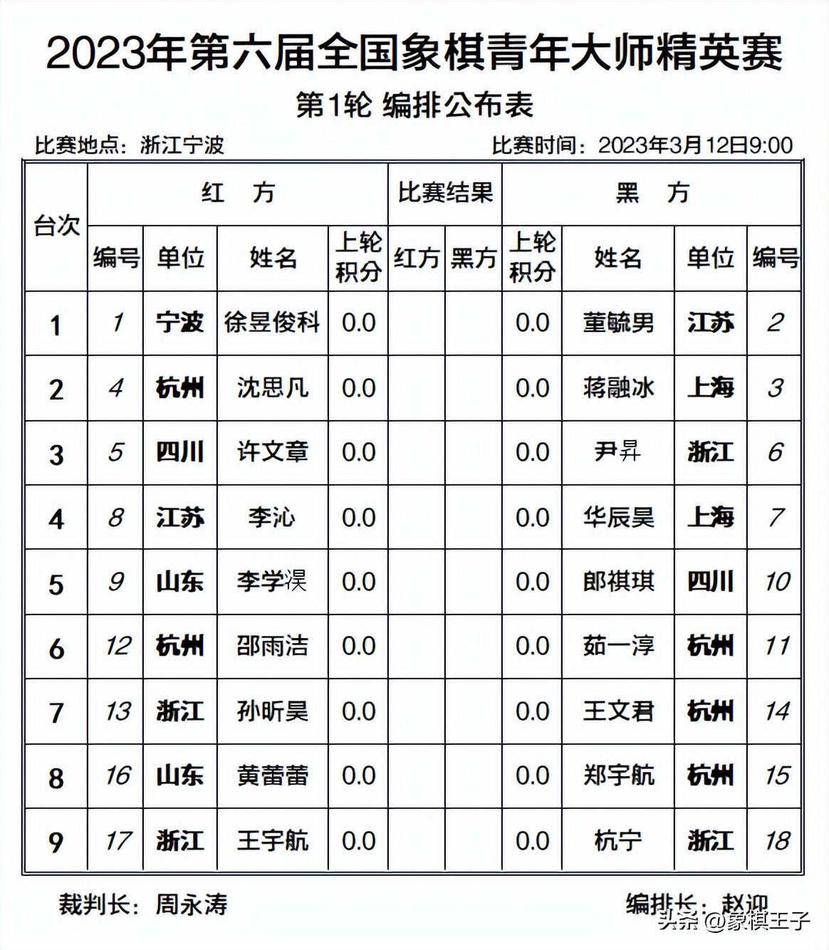 2023年第六屆全國象棋青年大師精英賽,限定1999年1月1日以後出生,除了99年,就是00後。