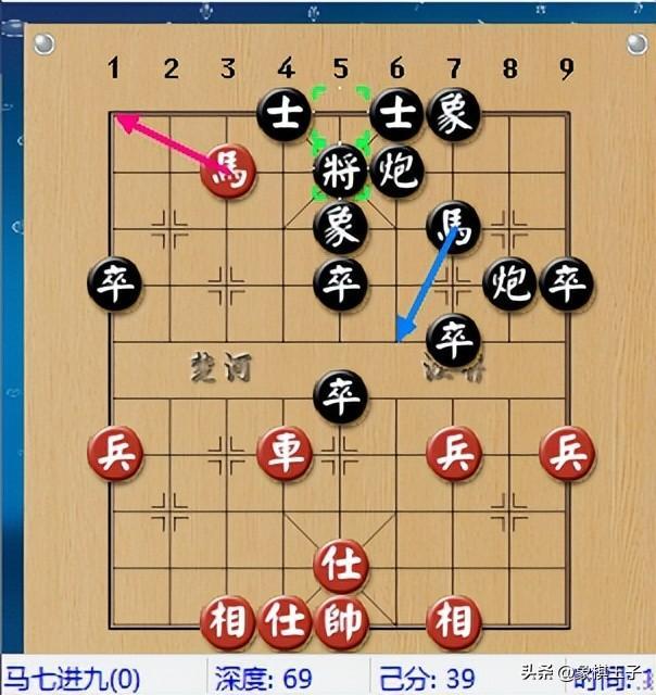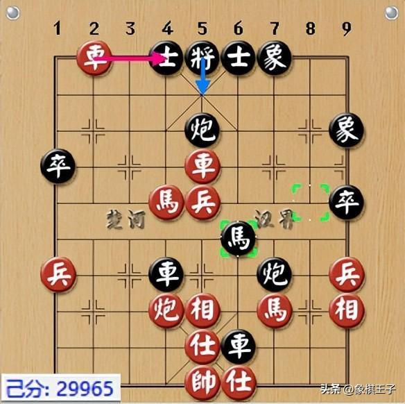 由於殺招隱蔽,黑方不以爲是,過馬踩踏紅車,紅棋當即出手,瘋狂使出神級一步,棄車砍士,毒辣成殺。
