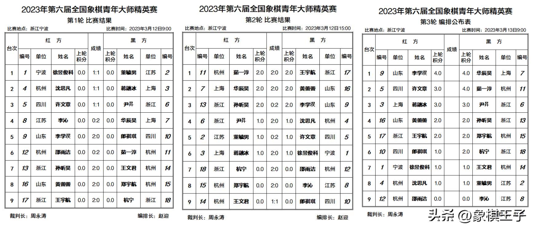 首日兩輪戰罷,茹一淳、李學淏、華辰昊,三人二連勝4分居首,許文章、蔣融冰、尹昇3分。