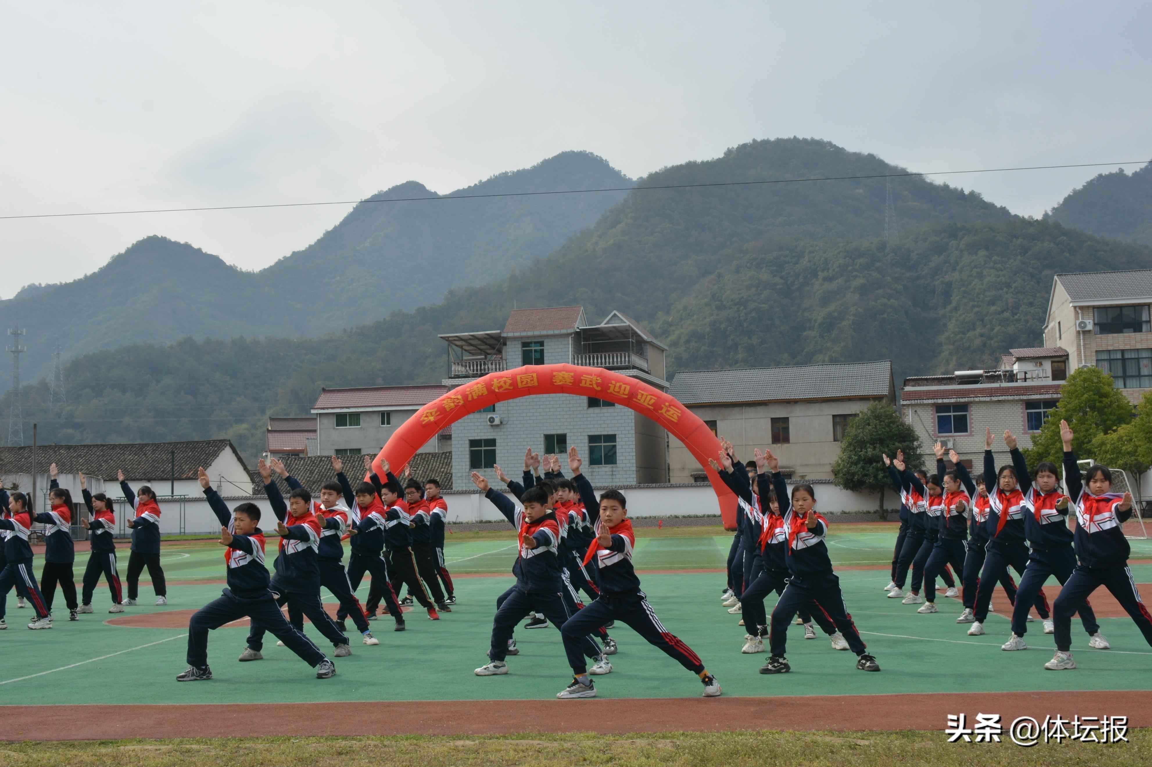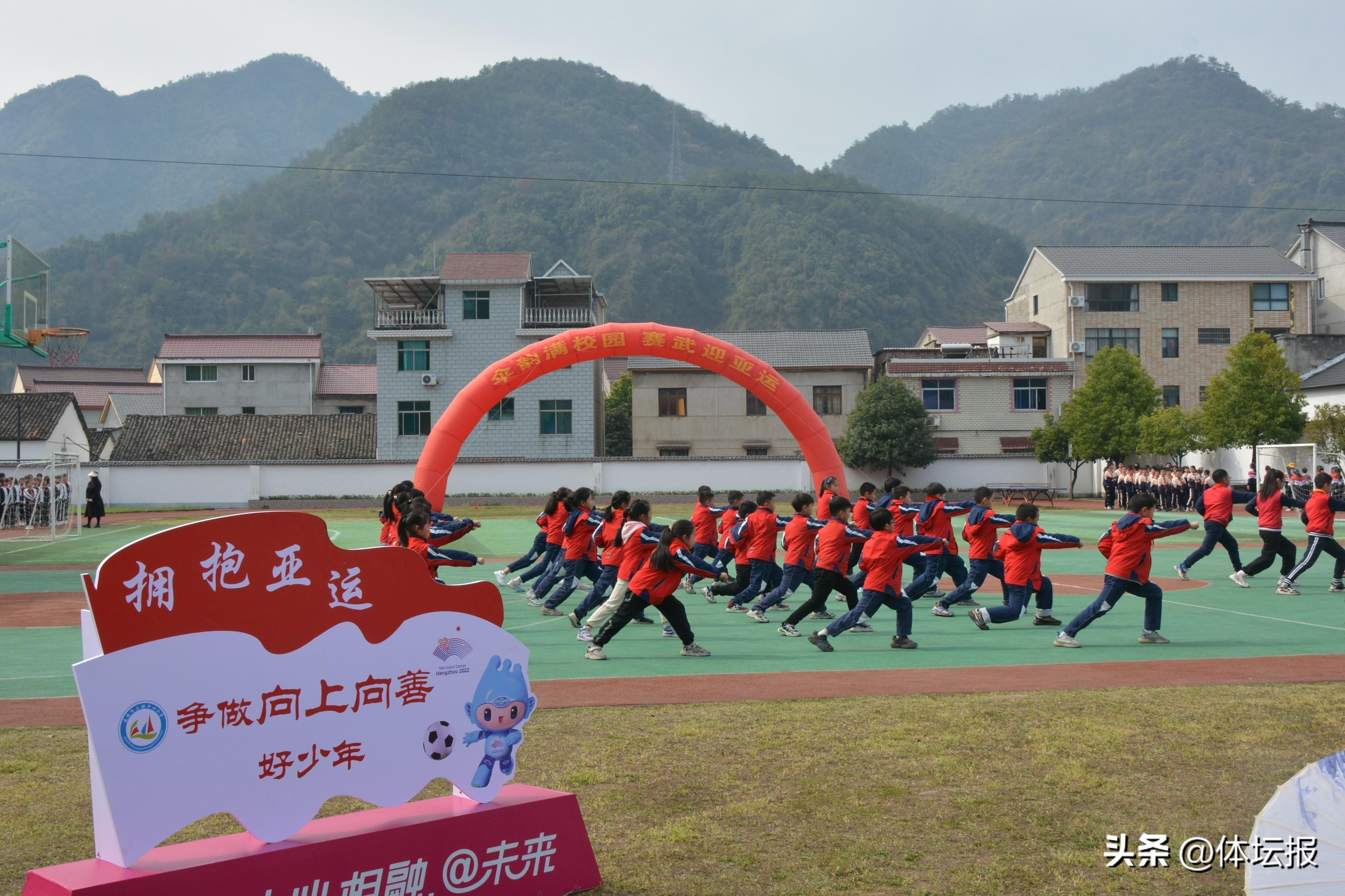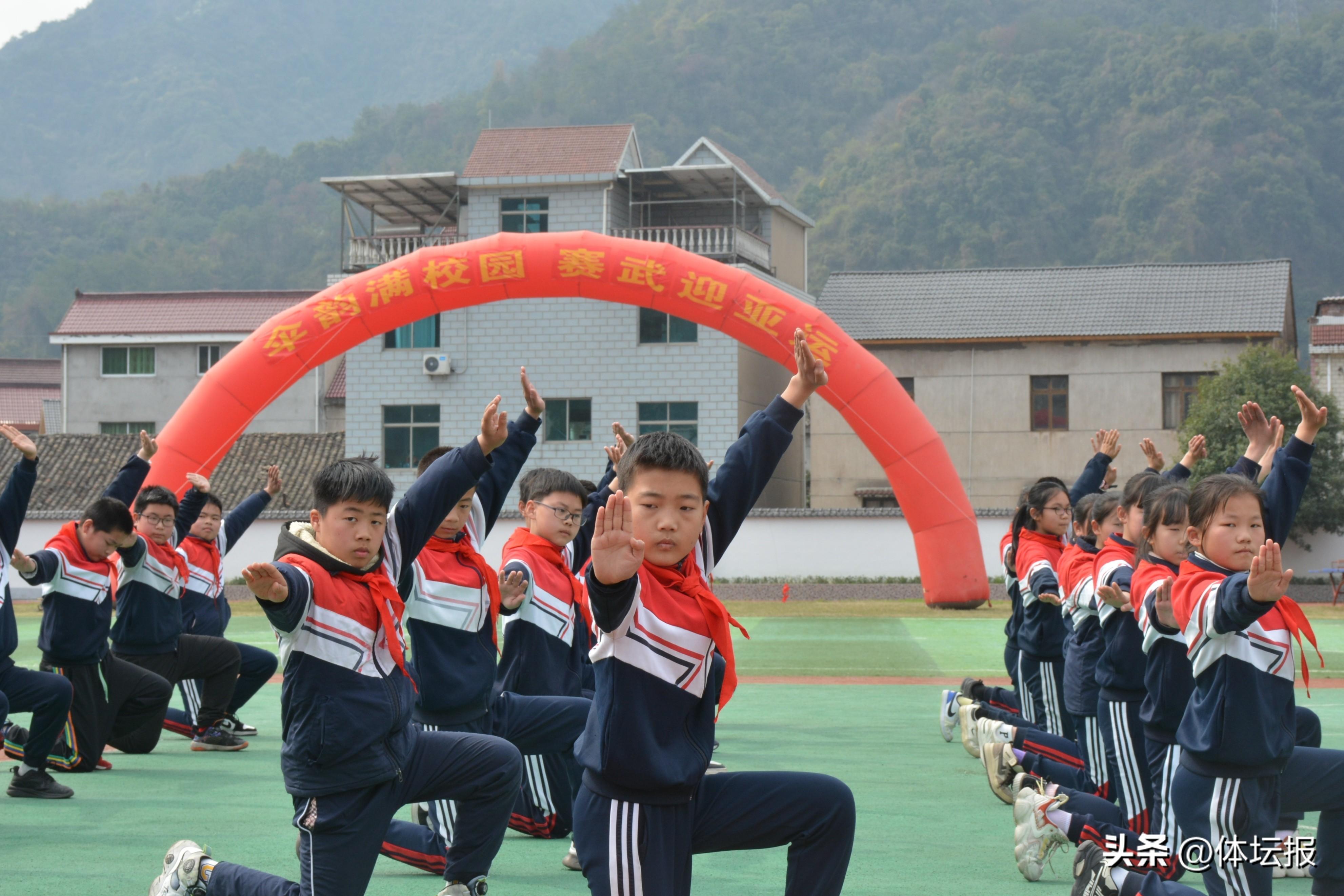 爲全力推進“武術進校園”,積極營造良好的武術文化氛圍,促進學生身心健康,營造亞運氛圍,2023年3月15日,建德市三都中心小學舉辦了“傘韻滿校園,賽武迎亞運”武術操比賽。