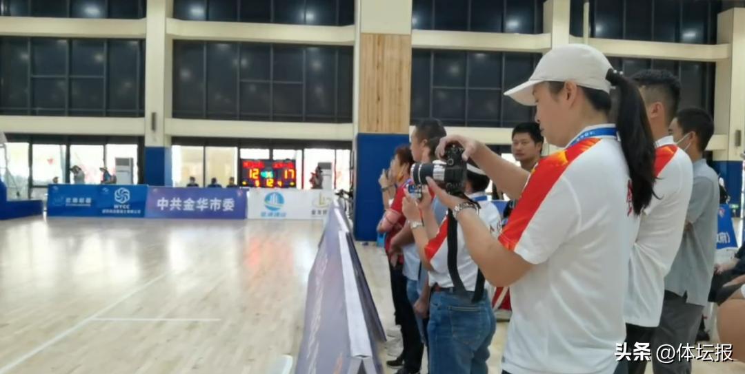 男子三人籃球的比賽1號場地和2號場地是同一個籃球場的兩個半場,往往出現金華隊甲組在左半場比賽,乙組在右邊半場,這可忙壞了教練。這邊指導着甲組的比賽,眼睛還要不時看着乙組,哪邊比分落後,就要跑到哪邊指導。