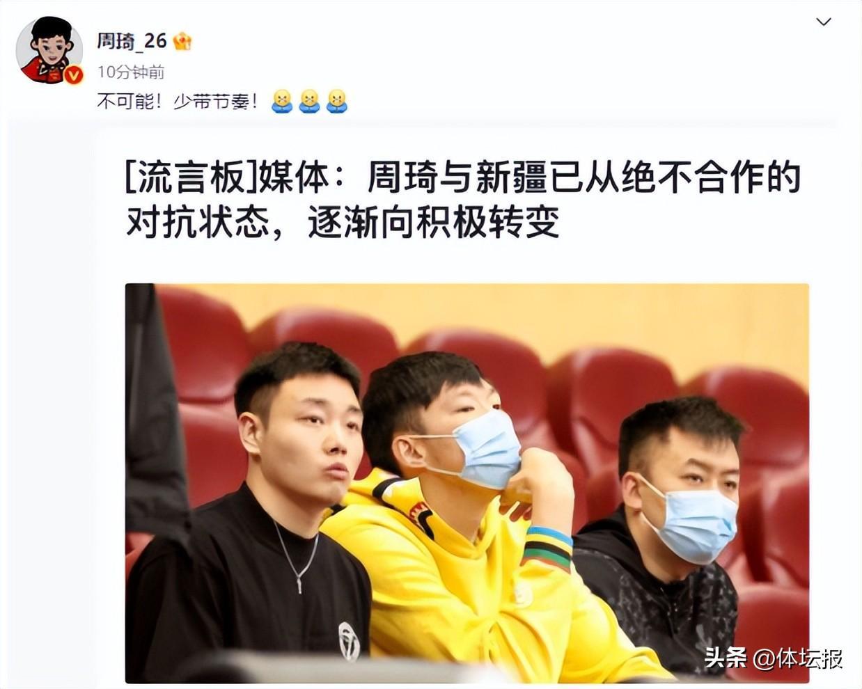 近日,關方面透露,“新疆和周琦都知道雙方的矛盾難以彌合,周琦也很難接受繼續爲新疆隊打球。但雙方對彼此的態度,已經從之前絕不合作的對抗狀態,逐漸一點點開始向積極的方向轉變。”對此,周琦本人進行了闢謠:“不可能!少帶節奏!”