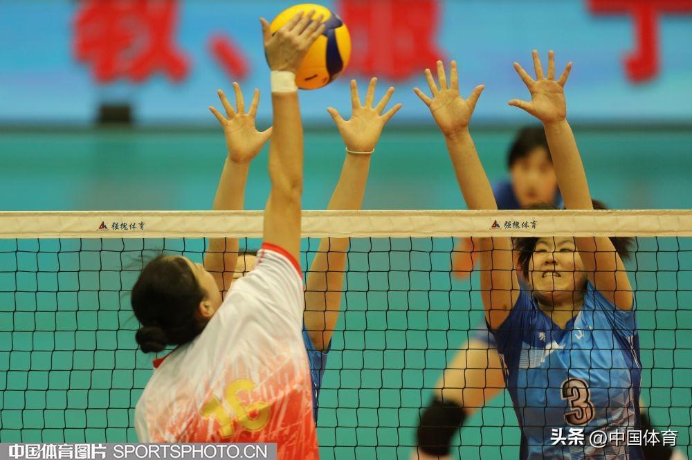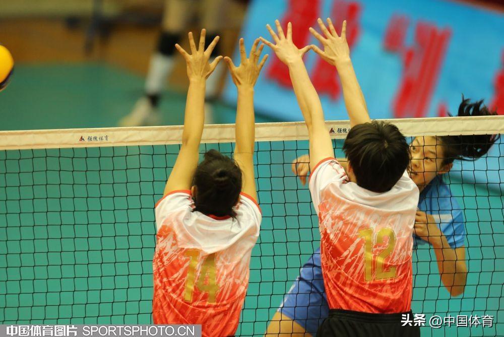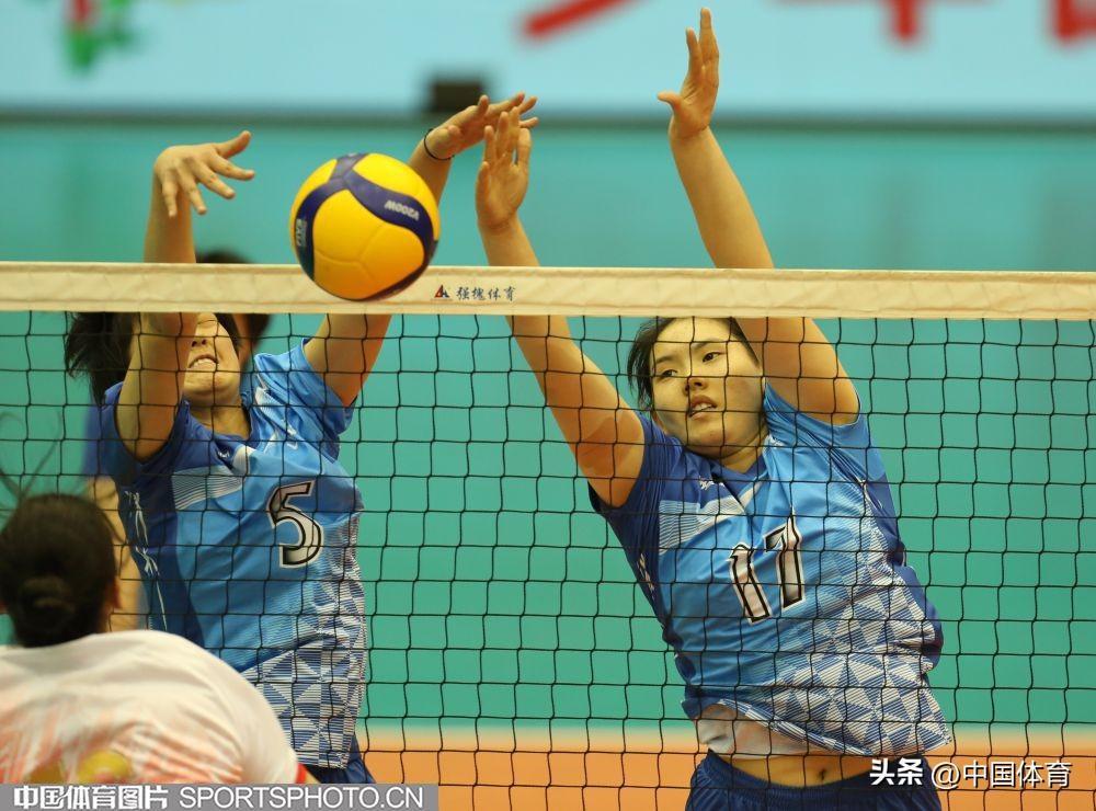 上海青年隊10號陳厚羽12號熊芹清攔網