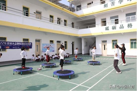 2023年駐橫陂幫扶工作隊推動大衆蹦牀再次走進校園,旨在進一步加強橫陂鎮校園大衆蹦牀的培訓指導與推廣,深化體教融合,提升師資理論與實操技能,推動兒童青少年積極參與健身活動,提高健康水平。