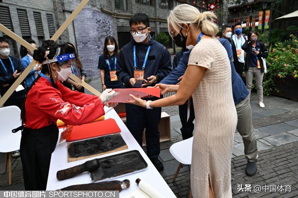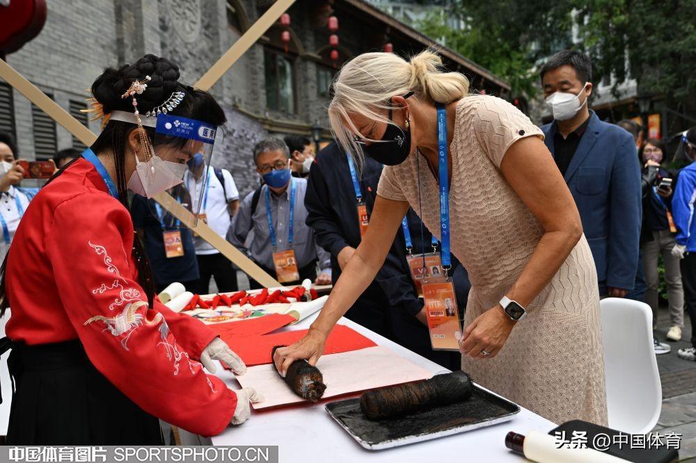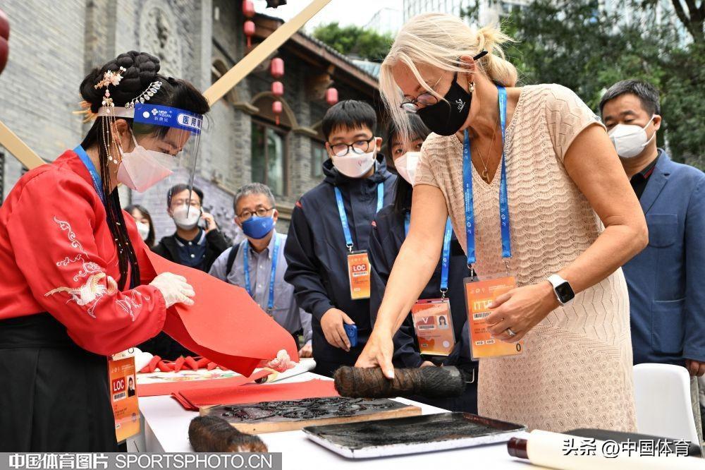 中國體育訊 2022年第56屆國際乒聯世界乒乓球團體錦標賽(決賽)將於9月30日開幕。9月27日,國際乒聯主席佩特拉·索林及外國運動隊一起在成都參加城市文化交流活動。(中國體育圖片 白宇 攝)